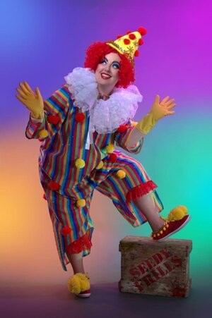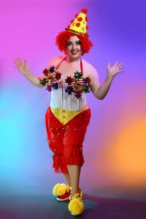 Th elements of my clown costume actually fitted together really well because we had quite a few meetings and there was a lot of discussion about what I wanted and how I wanted it to zip up and down. I did actually alter the onesie little bit when I got it, the zip was fine, but I decided it was catching on my shoes, which I wouldn't have known until I got it. So I altered the bottom of it a little bit just to make it make it more personal and make sure it wasn't gonna be hard work getting in and out of. And then of course, I embellished it anyway. Once she sent it to me, I added a tassel, I covered it in rhinestones, and then handmade hundreds of little tiny pom poms, which took forever and then hand stitched them onto the onesie. So in that case we worked together. It was a good collaboration and there were still a lot of me in that costume as well because I added so much to it. I suppose that's the difference between me going and talking with her about what I wanted and going a couple of times for costume fittings, rather than just having a rough sketch of a drawing, sending it to someone, and that being it until you get it. This was very much a really good collaboration. We met up a few times, and if there was something that wasn't quite right, then she she'd alter it for the next time. It worked because it was a collaboration and I altered little bits of it to fit my act.